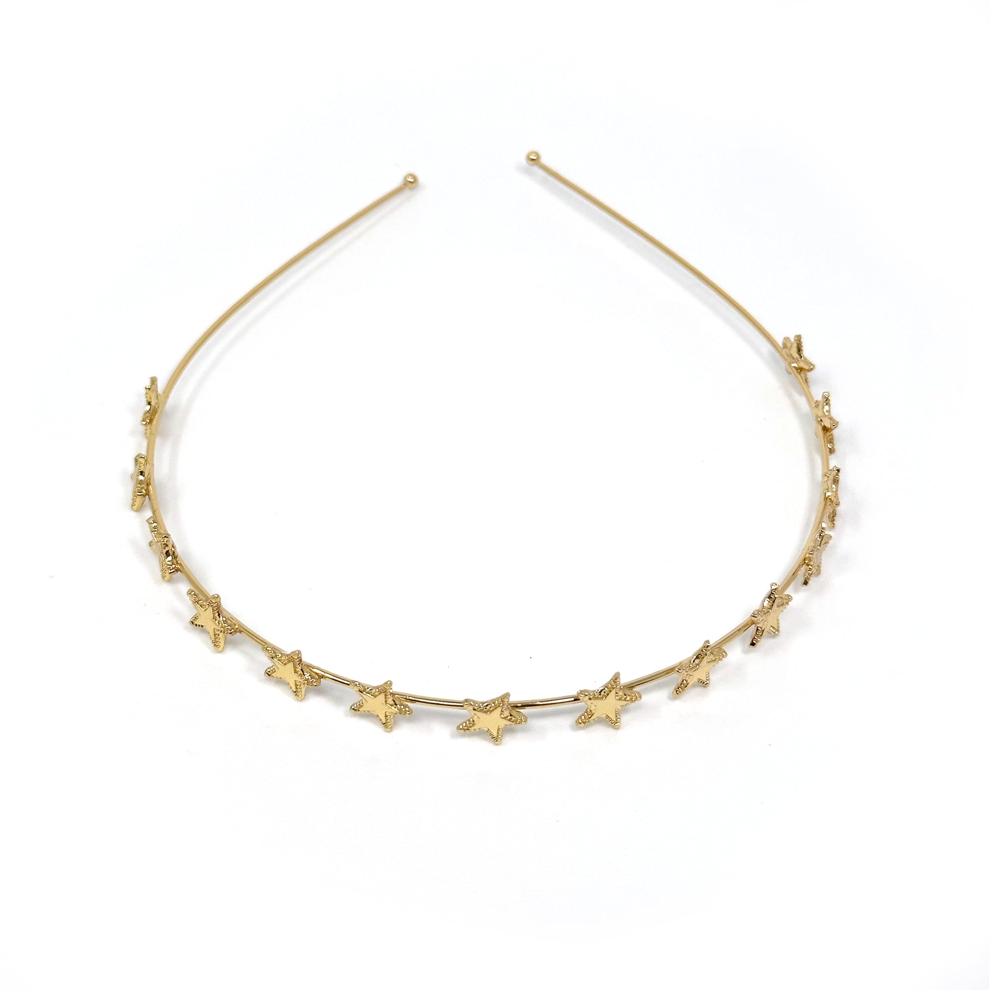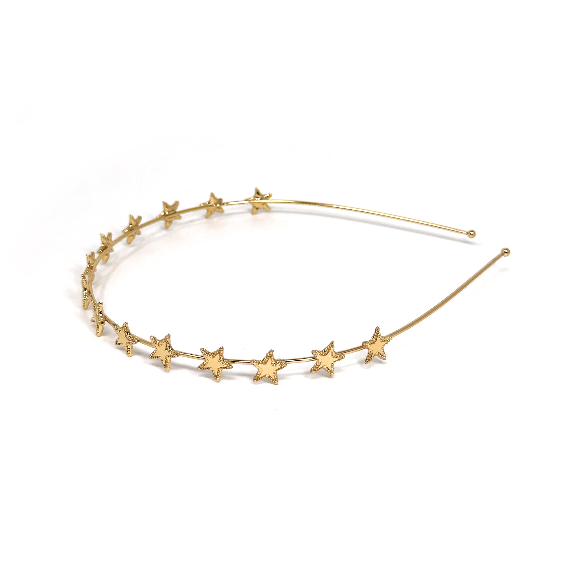 Summon your inner fairy princess with this beautiful headband adorned with small gold tone stars.