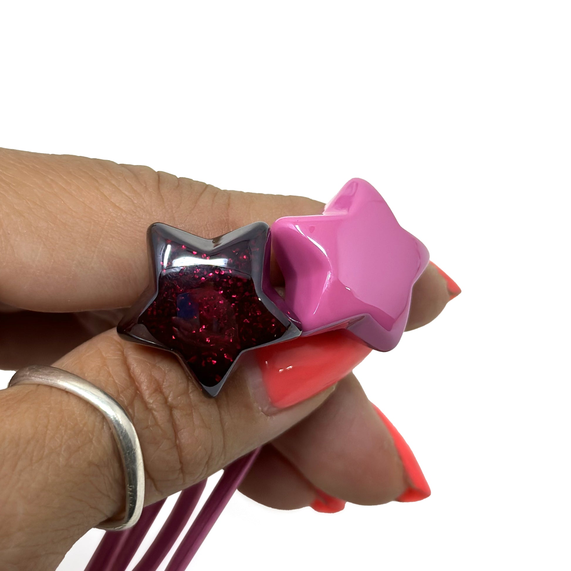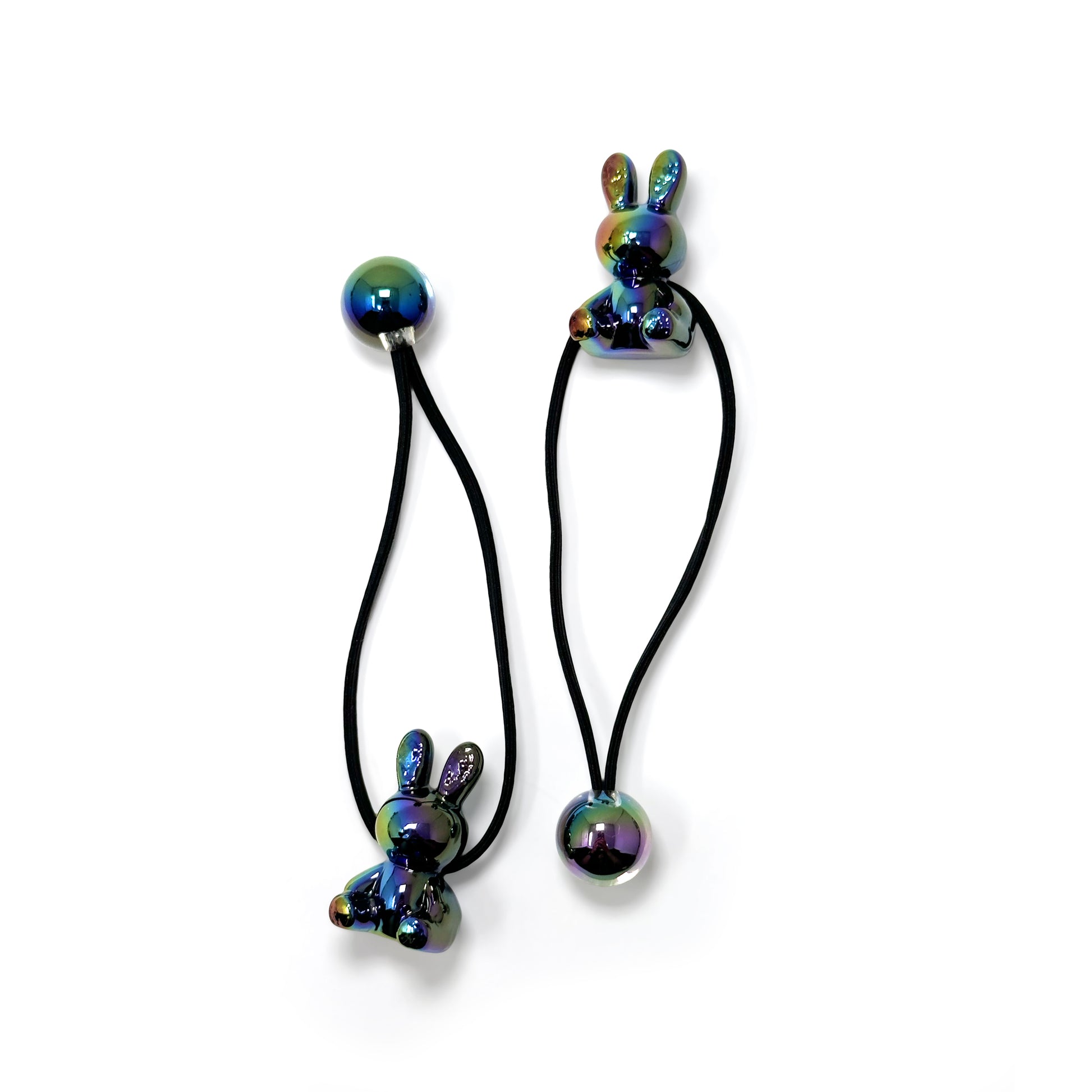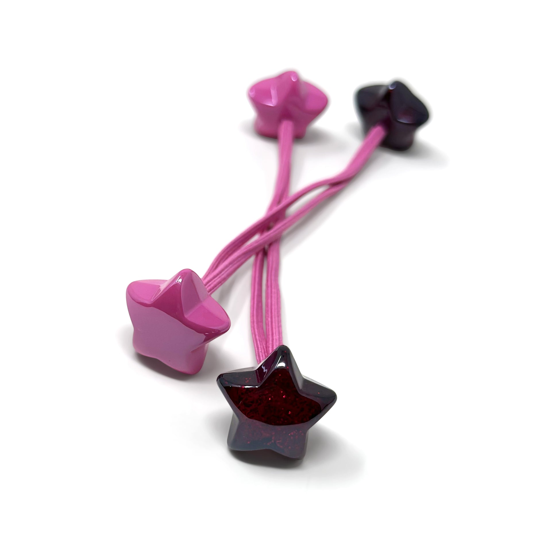 Our Ponytail Holder - Shapes & Spheres (Set of 2)—a modern twist on classic ball hair ties that adds fun and flair to your hairstyles! Each set features two unique hair ties, each with a stylish ball at one end and playful shapes on the other, including adorable bears, sparkling stars, and charming rabbits. With a length of approximately 3.5", these ponytail holders are perfect for securing your hair while adding a touch of personality. The shapes include: