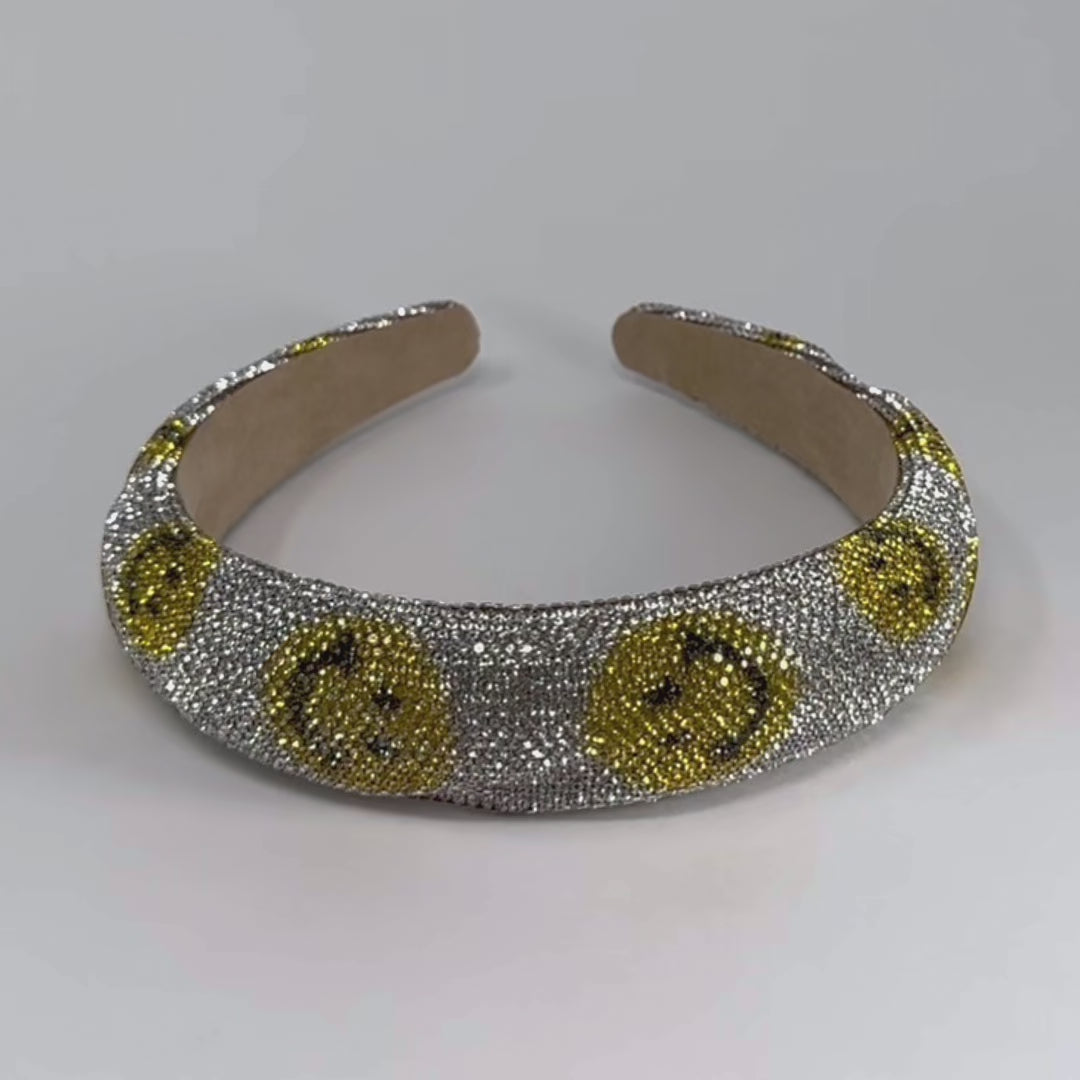 Additional Info: Whether you're dressing up for a special occasion or just want to add some sparkle to your day, the Smiley Dazzle Headband is the perfect accessory. Its bright, playful design will bring a smile to your face and those around you!